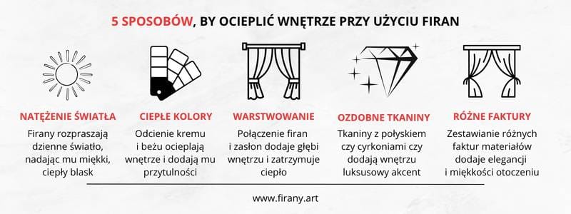 Firany działają na nasze zmysły podobnie jak muzyka w filmie. Gdy są dobrze dobrane, wypełniają przestrzeń emocją. Ich miękkość, delikatny ruch i sposób, w jaki łapią światło, tworzą wrażenie spokoju i harmonii.