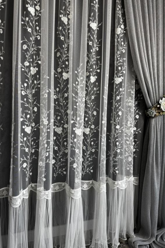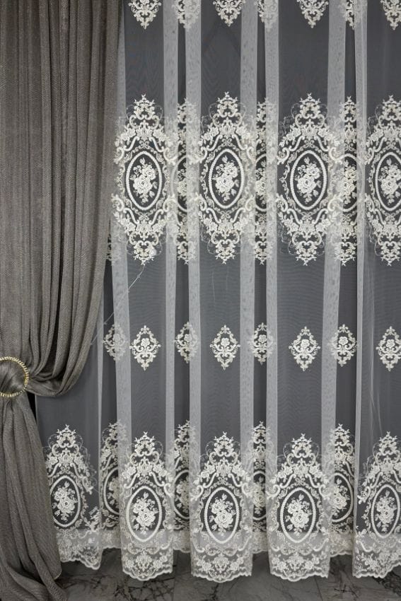 Ekskluzywne firany są wykonane z tkanin wyższej jakości – takich jak turecki woal, włoska siatka czy tiul z dodatkiem nici metalizowanych. Charakteryzują się dopracowanym haftem, ręcznymi zdobieniami (perełki, cyrkonie, gipiura), a także unikatowym wzornictwem. To produkty, które łączą piękno i trwałość – są bardziej dekoracyjne i odporne na deformacje niż tańsze zamienniki.