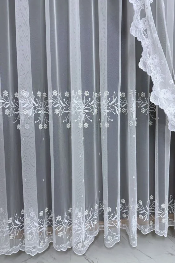 Dzięki dwóm paskom delikatnego haftu, misternym kwiatuszkom z perełkami i lekkości tureckiej siatki, U99 tworzy atmosferę elegancji, światła i harmonii.
