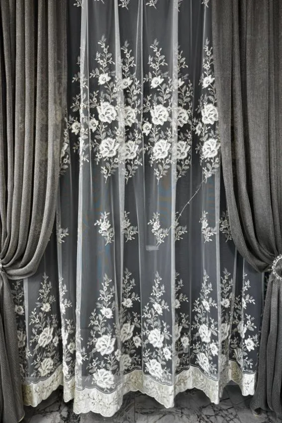 Firana ecru z kwiatami i złotą nicią – S22 to dekoracja, która łączy ręczne rzemiosło i luksusowy design. Dzięki haftowanemu kwiatowi, złotej nici i welurowemu wykończeniu model ten staje się ozdobą klasy premium, która podkreśli charakter każdego wnętrza. To firana idealna do salonu, sypialni, jadalni, a także przestrzeni reprezentacyjnych.