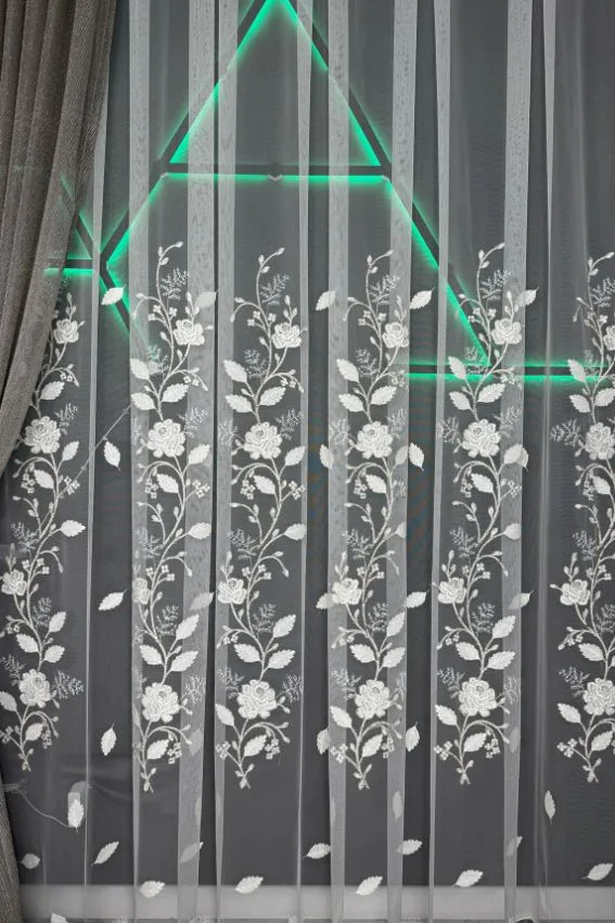 Firana ecru z perłowymi różami – S27 to propozycja, która łączy romantyzm z ponadczasową elegancją. Wykonana z włoskiej siatki premium w odcieniu ciepłego ecru, stanowi subtelną bazę dla efektownego haftu w formie róż. Każdy kwiat zdobi drobna, połyskująca perełka, która wprowadza do wnętrza nutę luksusu i delikatnego blasku.