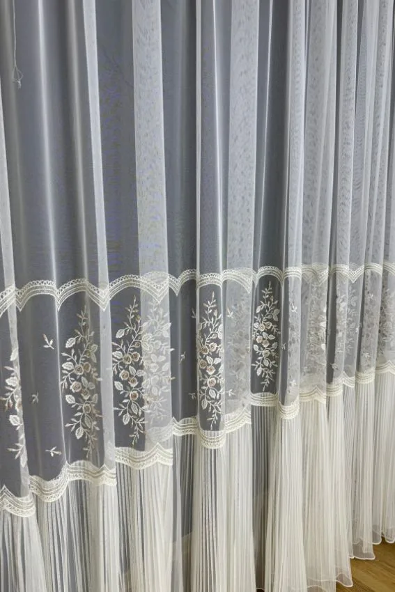 Wzór firany wraz ze spódniczką sięga wysokości 130 cm, co tworzy wspaniały efekt wizualny.