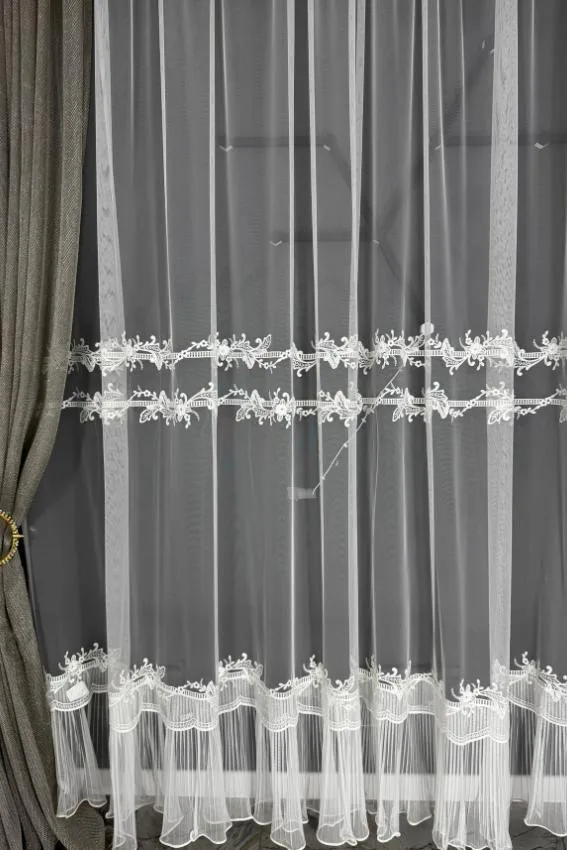 Model S37 to firana, która przyciąga uwagę swoją subtelnością i delikatnym połyskiem. Wykonana z wysokiej jakości tkaniny, łączy w sobie prostotę i wyrafinowanie. Jej mlecznobiały odcień wprowadza do wnętrza aurę świeżości i elegancji, a subtelny blask nadaje całości luksusowego wykończenia.