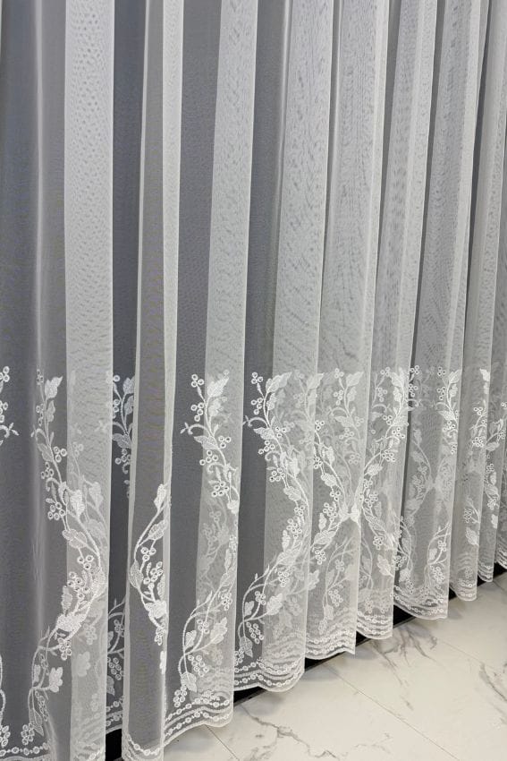 Firana Soft Floral Line – delikatna turecka siatka z kwiatowym haftem